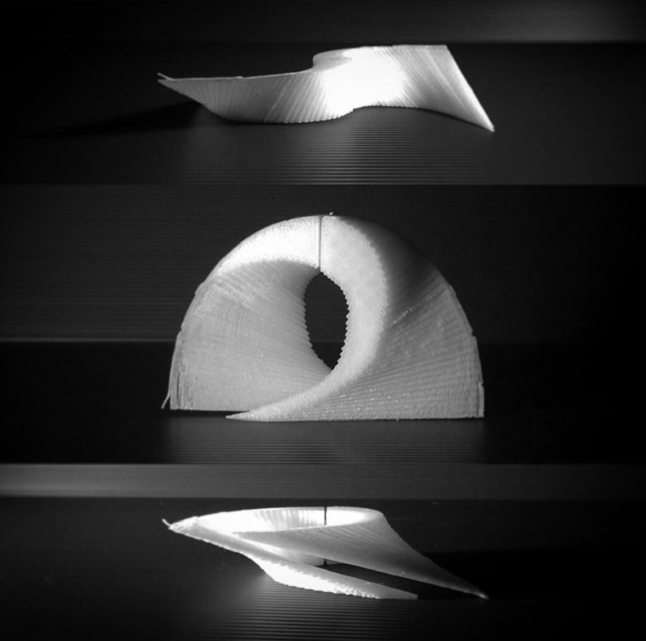 The prototype was conceptualized within Rhino then 3D printed for visual reference to test lighting features and shadow play as well as testing a scale environmental positioning visual.