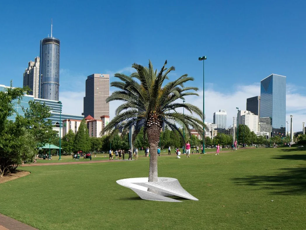 The idea of turning the design into a seat which surrounds and protects trees is a very appealing concept. This will allow people to sit under the shade of the tree with the added feature of the sculpture complimenting the tree with a modern form.